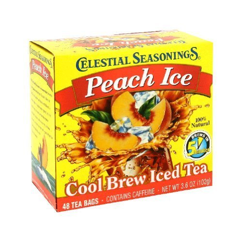 CELESTIAL SEASONINGS 6x 40 BAG PEACH COOL BREW ICED TEA. What could possibly go together better than juicy, orchard-fresh peaches and robust iced black tea? We cant think of anything. This delicious blend of two summertime favorites is the perfect thirst quencher on those really, really hot days.:. (Note: This product description is informational only. Always check the actual product label in your possession for the most accurate ingredient information before use. For any health or dietary related matter always consult your doctor before use.)